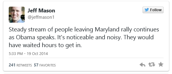 Over It: Steady Stream of Democrats Leave Campaign Rally During Obama Speech – Guy Benson By STLloyd October 20, 2014 via Townhall.com Rate this:If you liked it, pass it on! Click to print (Opens in new window) Print Tweet Click to share on Reddit (Opens in new window) Reddit Click to email a link to a friend (Opens in new window) Email Share on TumblrPocket Click to share on Telegram (Opens in new window) Telegram Like Loading... Related