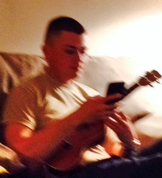 This is not a great picture, taken with the cell phone, of Ben playing his ukulele…