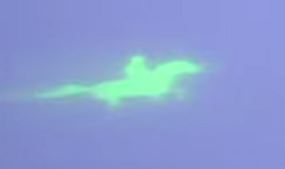 A green ghost rider appeared in the sky over the British city of Nottingham when scientists started testing a newly developed projecting device which allows the beaming of moving images directly onto clouds for the first time ever.