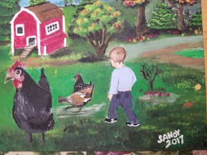 My friend’s grandbaby and chickens