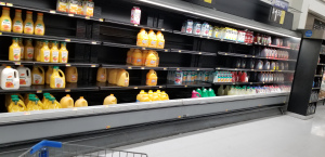 The run on TP, hand sanitizer, bottled water, and disinfectant spray, eggs, sugar (??) orange juice, motrin, tylenol, cold meds is all we see here for now. I figure people stopped in after work Fri. Nite.