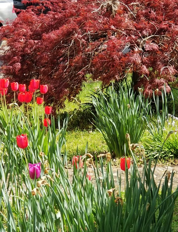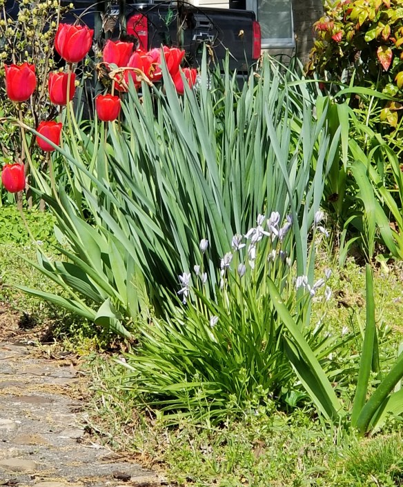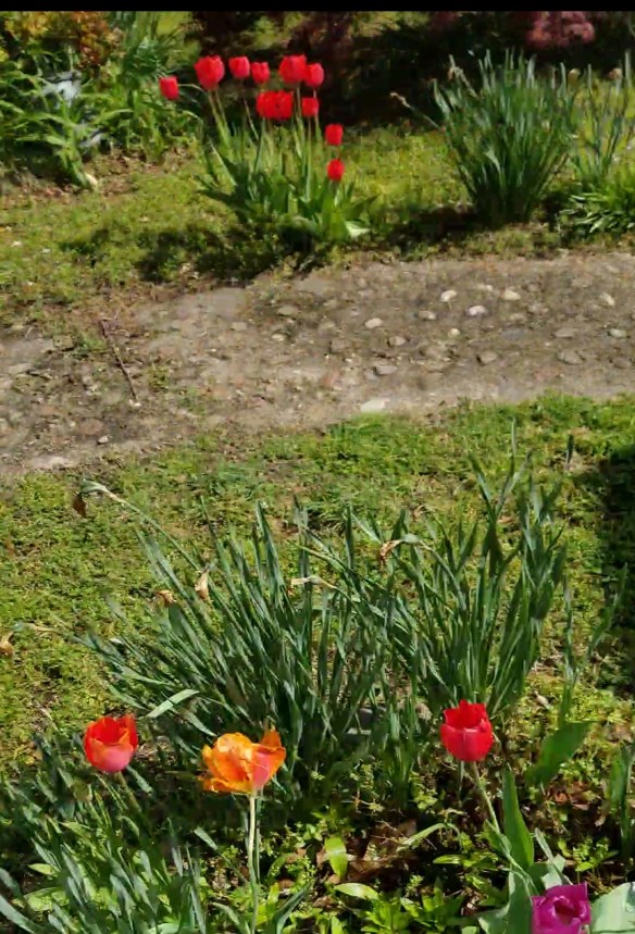 I planted multiple colors of tulips out there, not sure why all are red! Soil condition?