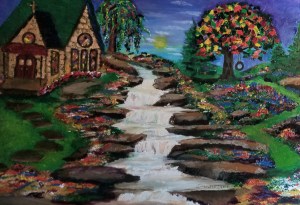 I don’t have any good fall pictures on my phone. My pictures disappear on a regular basis, some glitch with this Android version. But here is one of my paintings in a fall theme.
