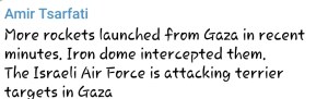 5. First barrage of rockets from Gaza towards the Jewish areas nearby at 03:10AM.