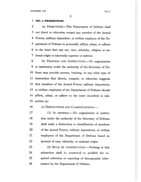 I realize our military isn’t going to save us from what is coming upon this world, but we can’t sit idly by and simply allow these policies that already have our military virtually hemorrhaging the morally upright personnel and replacing them with reprobates. Read the Bill below, introduced by Senator Roger Wicker of Mississippi!