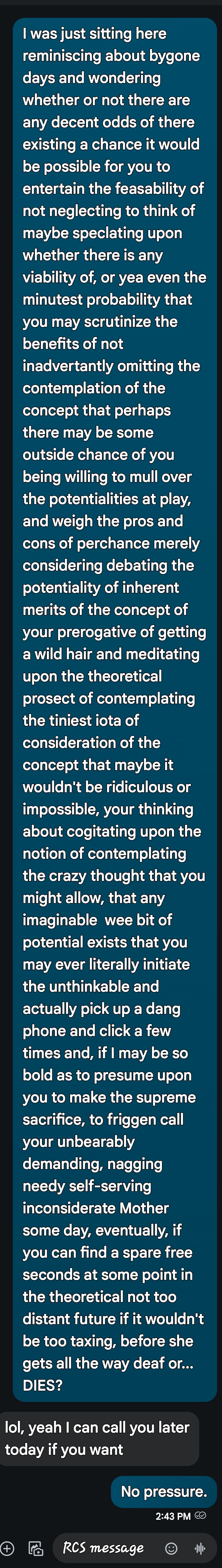 Our older son, is not as silent as his dad, but still a man of few words, and prefers texts, and has a newborn, a 3yr old, a full time job, Army Reserves, and is currently studying for his Paramedic certification, so I don’t presume upon his time, and just shoot him occasional texts to let him know I’m thinking about him and praying for his family. But, parents like to hear their kid’s voices once in a while.